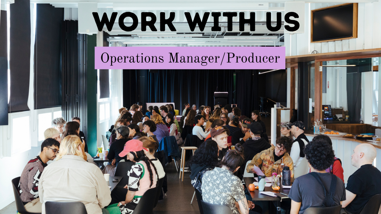 We welcome applications from First peoples, artists, parents, queers and culturally diverse folk. We create a flexible workplace to allow time and space for personal artistic projects, family responsibilities and travel.