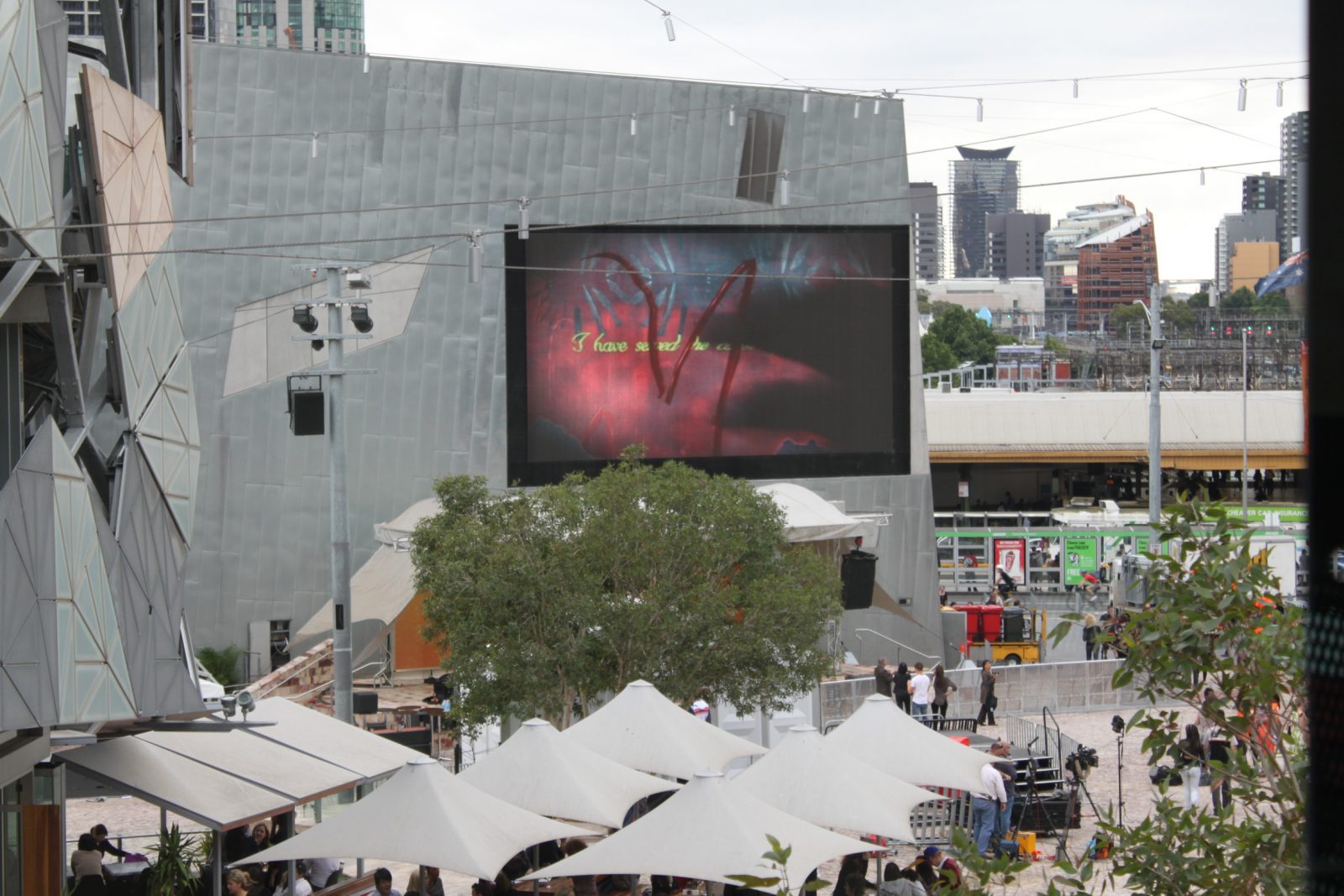 In December 2010, Aphids launched the Exile iPad app, hosting supporters in an exclusive event at Fed Square to celebrate the occasion. Attendees enjoyed sacrificial-inspired dishes prepared by Aphids’ organic catering sponsors Fresh Fork, and beverages by Mad Fish Fine Wines and Moritz. EXILE went live to iTunes on the 10th of December with featured previews of the EXILE App animated interactive experience illuminating Fed Square atrium and courtyard screens.