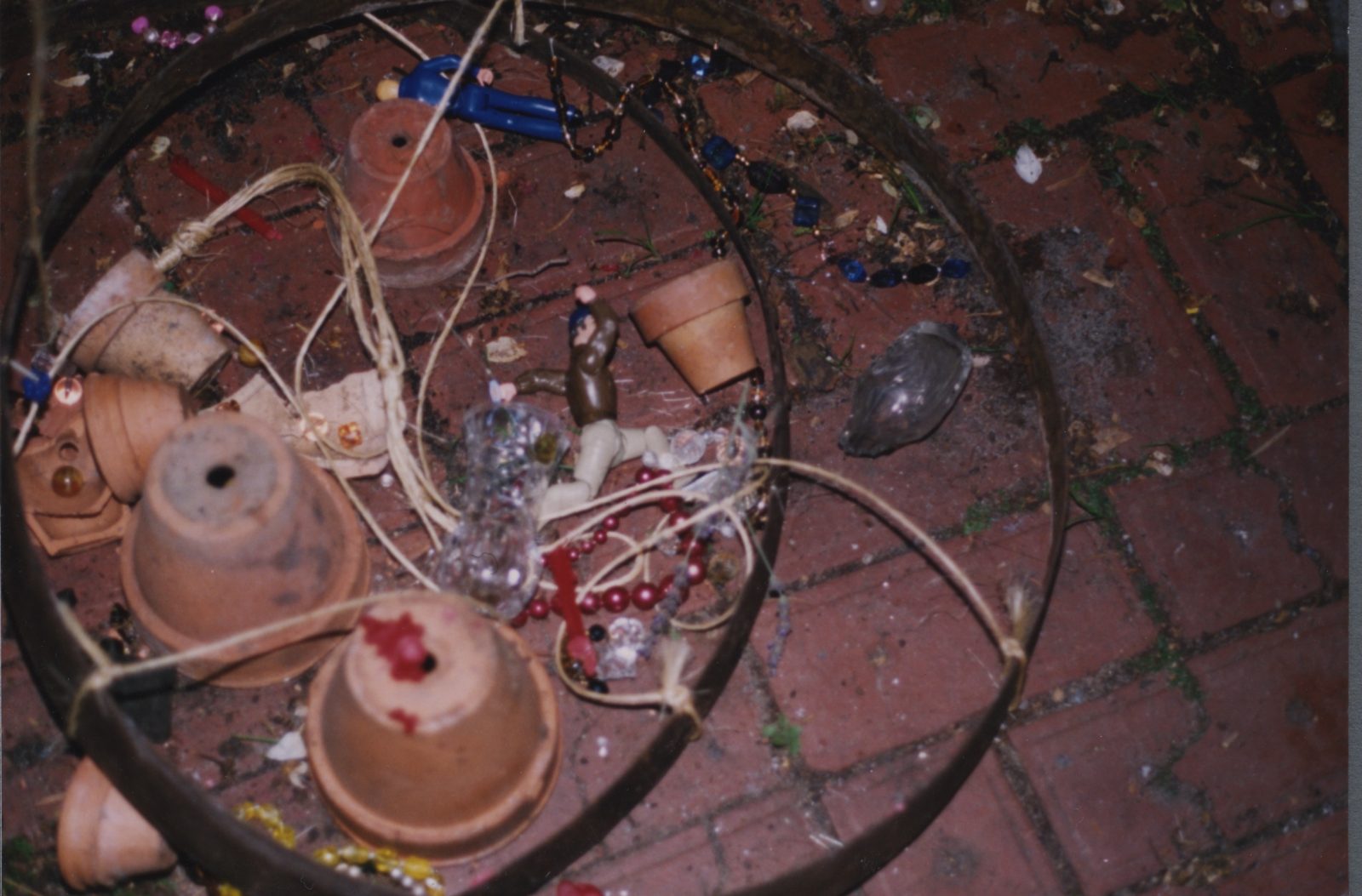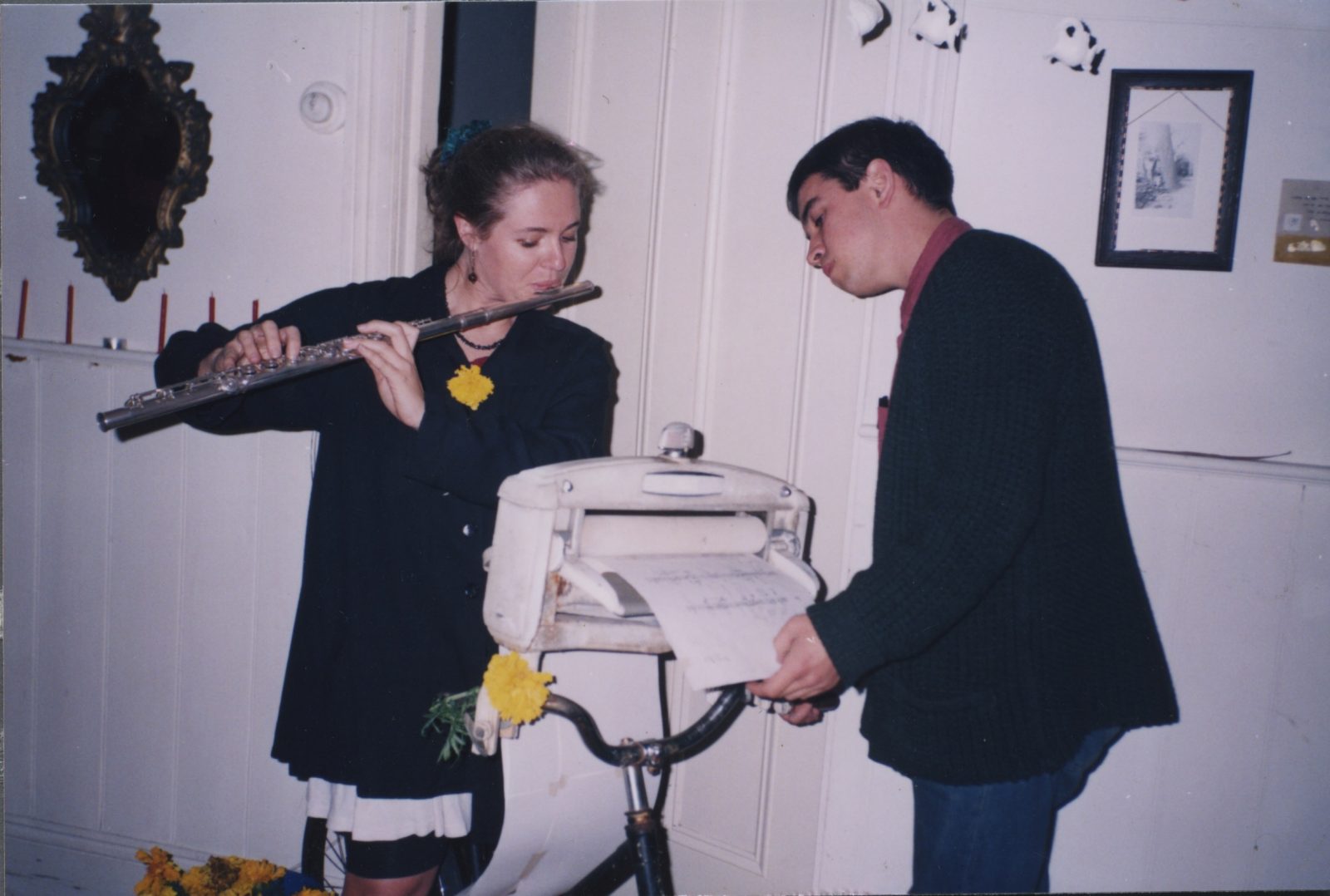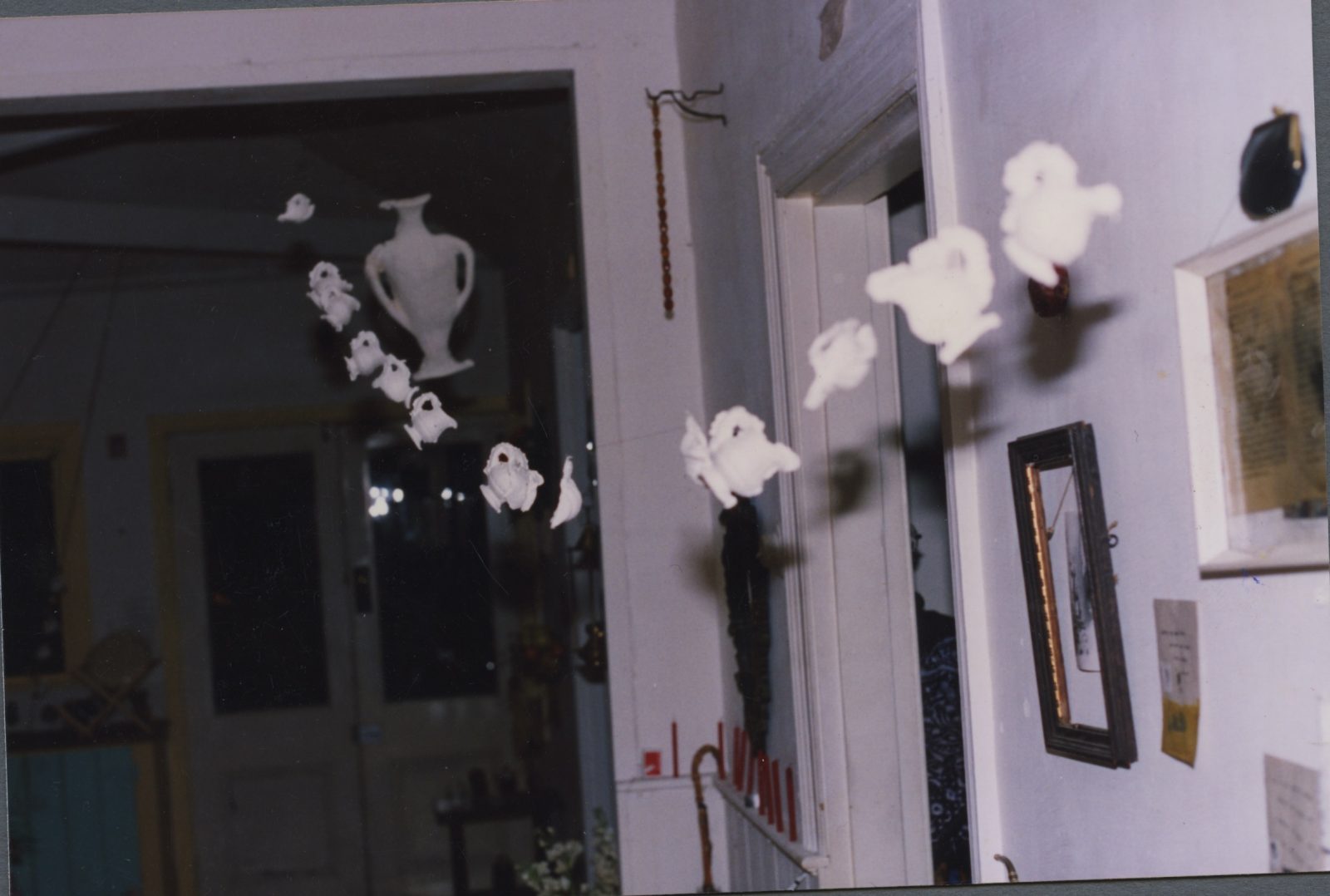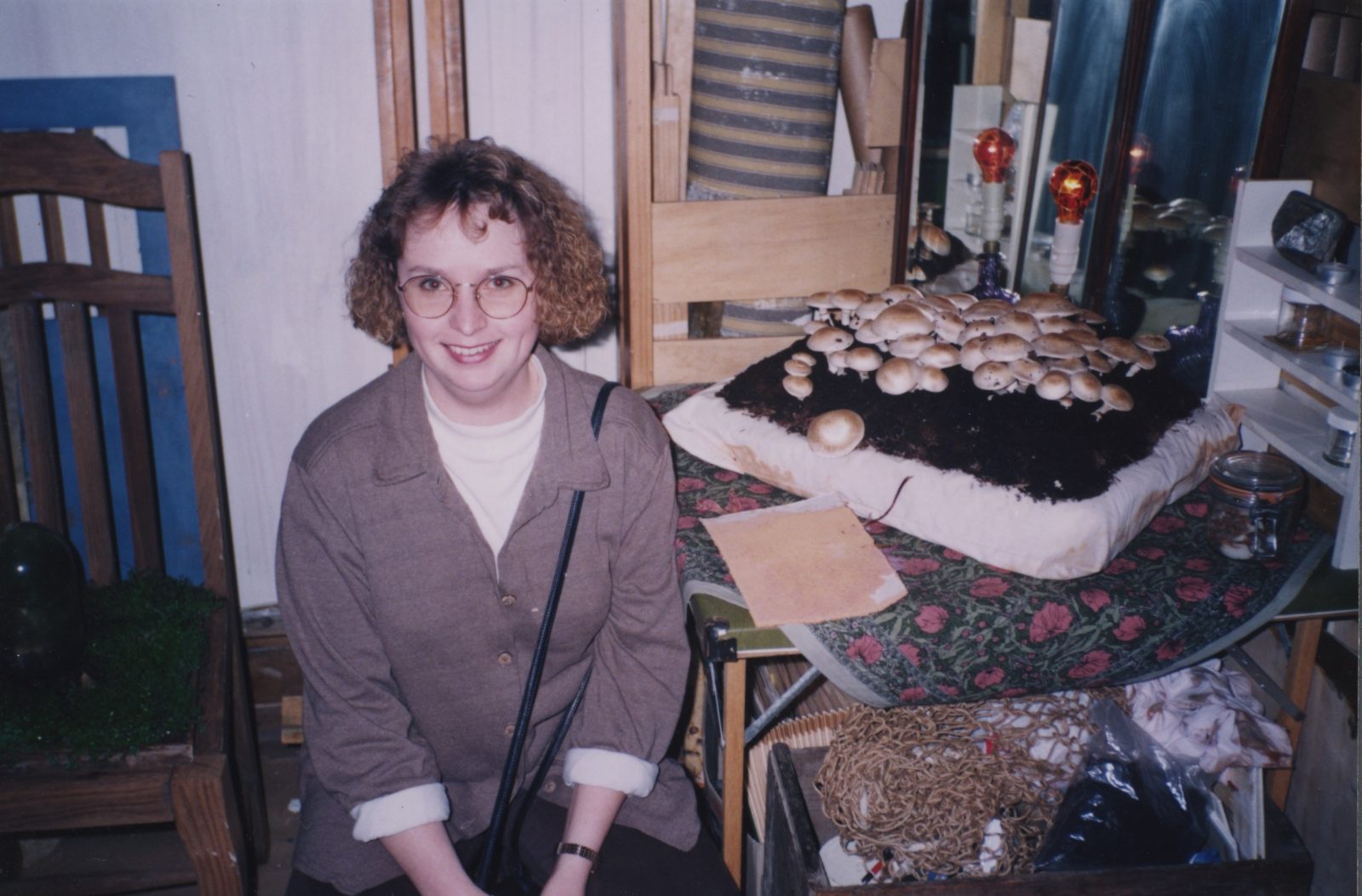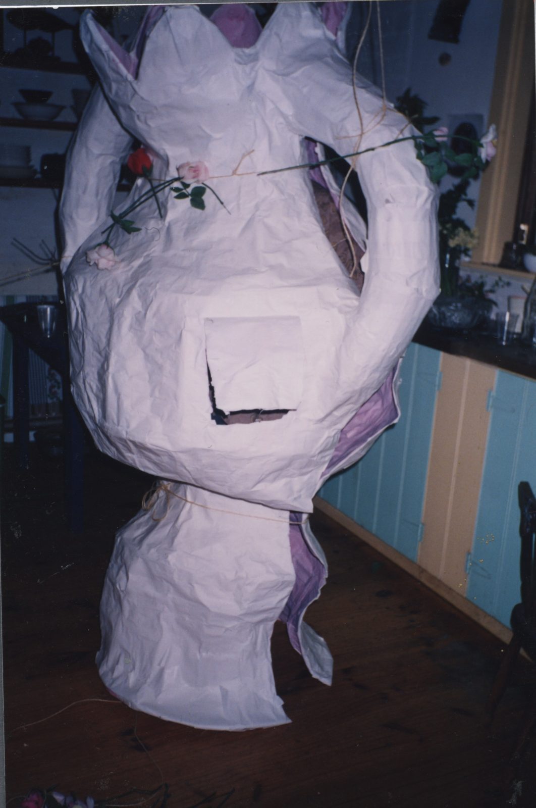 A human-sized paper vase, suits tailored from coffee-bags, marigold boots, clothes wringing music stands, food, watering cans and music.